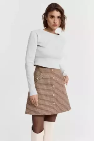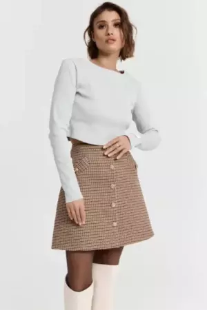 | Юбка из костюмной ткани. Юбка по переду на застежку - пуговицы. По бокам декоративные клапаны с пуговицей. Юбка на подкладке. Состав: полиэстер 65%, вискоза 32%, эластан 3%; подкладка: вискоза 50%, полиэстер 50% Длина по спинке 43 |