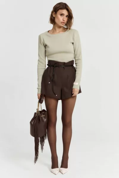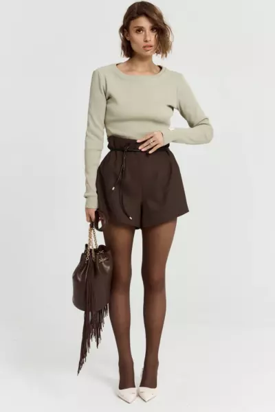 | Шорты в длине мини из костюмной ткани. Посадка высокая, по талии декоративные выточки, потайная молния по спинке изделия. Пояс в комплекте с изделием. Длина по спинке 42 Состав: полиэстер 58%, шерсть 21%, вискоза 18%, эластан 3%; |