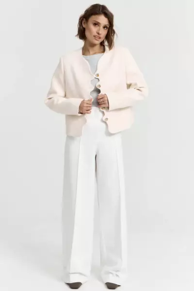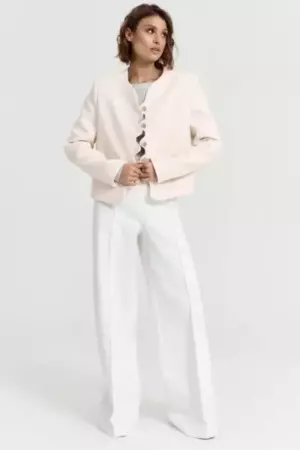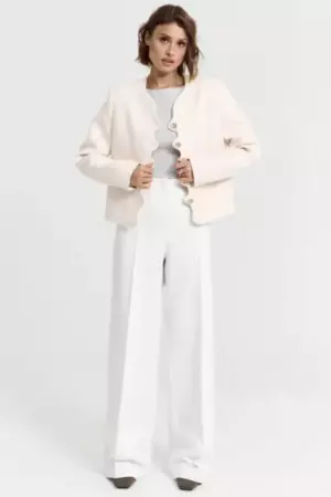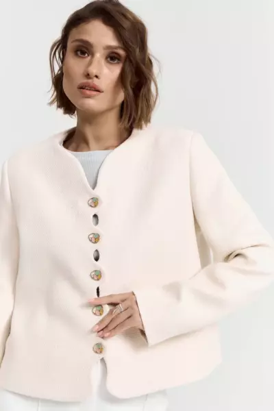 | Жакет прямого кроя, на подкладке, из костюмной ткани в твидовом стиле. По переду фигурный борт, рукав втачной. Длина по спинке: 55. Состав: полиэстер 65%, вискоза 32%, эластан 3%; подкладка: вискоза 50%, полиэстер 50% |