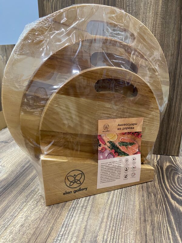 Комплект 3 досок 35*35*1,8 см, 30*30*1,8 см, 25*25*1,8 см "Круг с ручкой" на дер. подстав.