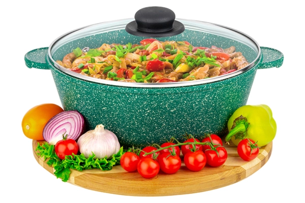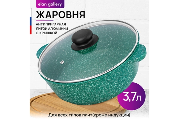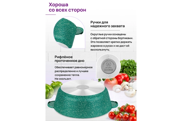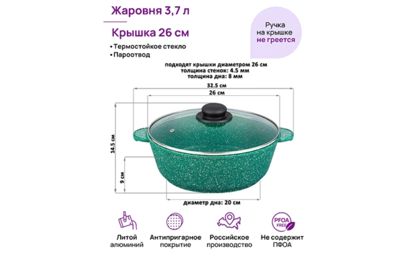 Жаровня (сотейник) 26 см 3,7 л ГАРМОНИЯ ВКУСА "Изумруд" С КРЫШКОЙ ф26, 32,5*27*14,5 см