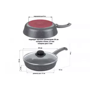 Сковорода глубокая 24 см ГАРМОНИЯ ВКУСА "Серый мрамор" ИНДУКЦИЯ, С КР. ф24, н/р, 43*25*12 см