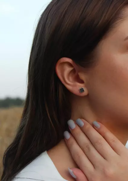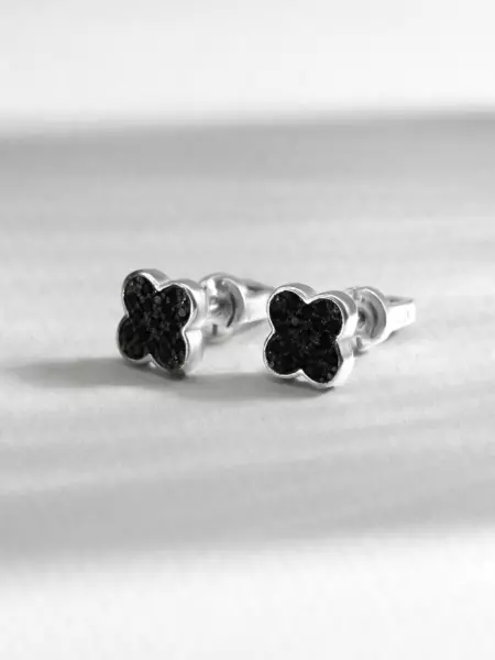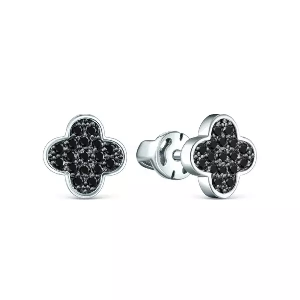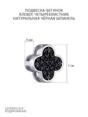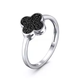 Кольцо из серебра с натуральной чёрной шпинелью родированное - Клевер, четырёхлистник 925 пробы 1-296рч416