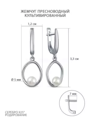 Кольцо из серебра с пресноводным культивированным жемчугом родированное К-0103-158-12