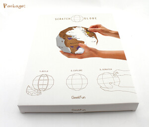 Континенты и острова на глобусе покрыты золотистым скретч-слоем, который легко устраняется при помощи обычной монетки. Побывав в новом городе или стране, путешественник может удалить однотонную поверхность на месте освоенной страны.