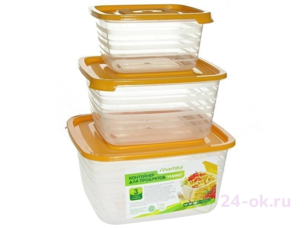 Набор контейнеров 3шт для продуктов (СВЧ) "Унико" квадратный (0,45л; 0,9л; 1,4л)• предназначены для хранения в холодильнике, замораживания, разогрева в микроволновой печи (без крышки) и транспортировки различных видов продуктов• плотная крышка защищает от доступа воздуха, что гарантирует сохранение свежести продуктов• в набор входят 3 контейнера объемом 0,45л, 0,9л, 1,4лЗаключаем договора по 44 ФЗ, 223 ФЗ_x000d_