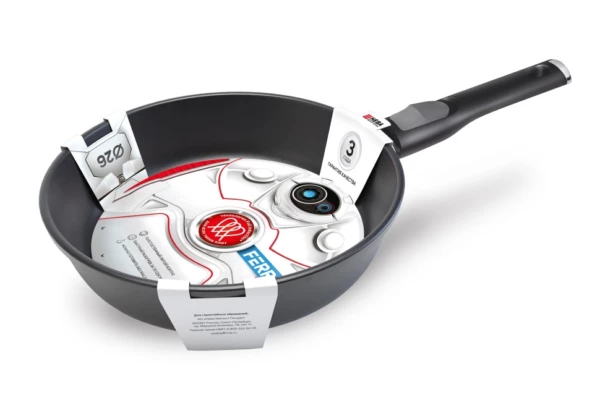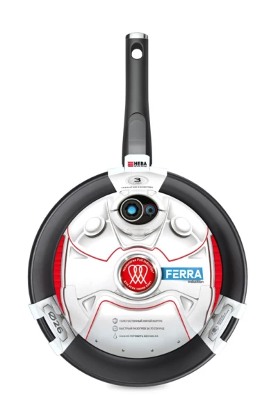 Серия литой алюминиевой посуды «Ферра Индукция» создана специально для индукционных плит. Посуда выполнена с использованием современной технологии «Full Induction», вся поверхность индукционного диска обладает магнитопроводящими свойствами, благодаря чему сковороды лучше распознаются датчиками индукционных плит, а также обеспечивает разогрев посуды за 70 секунд* до идеальной температуры для жарки. Главным преимуществом серии является многослойная антипригарная система, в которой используются европейские материалы премиум-класса. Покрытие отличается повышенной износостойкостью, сковорода долго сохраняет антипригарные свойства и безупречный внешний вид. Такое покрытие экологично и безопасно, не содержит PFOA (перфтороктановой кислоты).
