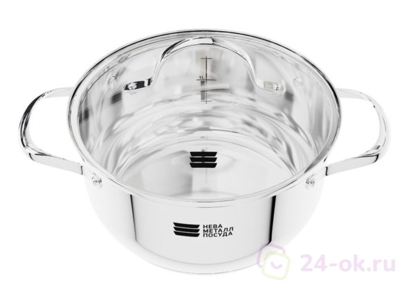 Эргономичный дизайн ручек из нержавеющей стали и надежное крепление обеспечат комфортное и безопасное использование. Комбинированная крышка из нержавеющей стали и термостойкого стекла с отверстием для выпуска пара исключают излишнюю вибрацию крышки при кипячении. Удобная мерная шкала на внутренней поверхности поможет определить нужный объем жидкости.
