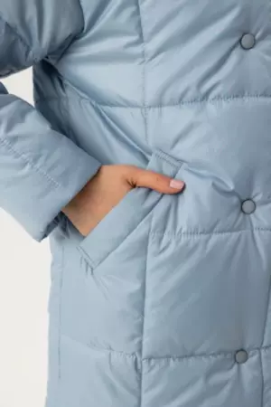 Бренд: FEMME. Цвет: 22 Голубой. Состав: 100% полиэстер. Сезон: Осень-Зима. Доставка курьером по РФ. Женская куртка свободного силуэта длиной выше линии колена на 10 см на утееплителе изософт потностью 200 гр./м.кв. (от +0 до -10 градусов).Застежка на кнопки и глубокие карманы спереди обеспечивает удобство и практичность в использовани.Интересные фигурные разрезы по бокам и двойной капюшон добавляют этой модели эксклюзивности.Оденьте ее, когда выходите за кофе или на работу, или добавьте теплые аксессуары и отправляйтесь гулять, если на улице нет сильного мороза.