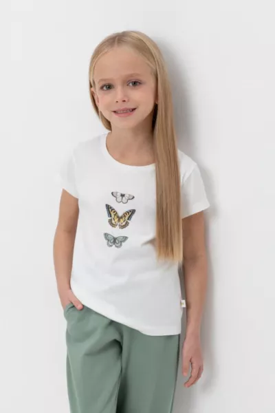 Футболка для девочки из высококачественного трикотажного полотна. Оригинальный принт выполнен из стойких текстильных красителей. 100% хлопок CROCKID В гармонии с природой Узбекистан женский супрем Всесезонний