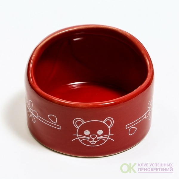 Миска керамическая "Хомячок", 6,3 х 4,5 см, красная