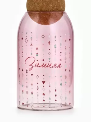 Банка для хранения новогодняя Дорого внимание «Зимняя сказка», стекло, розовая, 800 мл