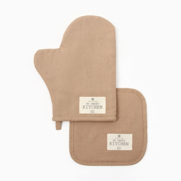 Набор кух. Этель ECO, цв. бежевый: варежка 20х28 см, прихватка 19х19 см, 70% хл, 30% лён, в