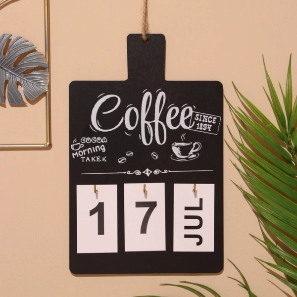 Сувенир вечный календарь подвесной "Coffee", дерево, 0,7х17х26,5 см, цв. чёрный