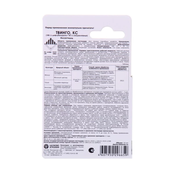 Инсектицид Твинго, КС, для защиты садов и виноградников от комплекса вредителей, 10 мл