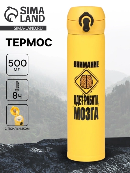 Термос «Работа мозга», 500 мл, жёлтый