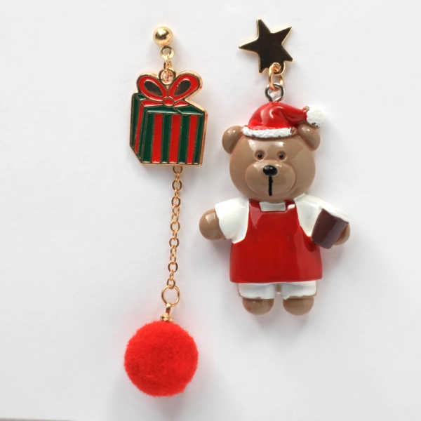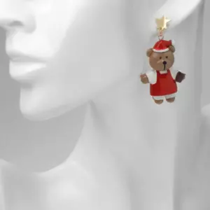 Серьги висячие «Новогодние» медведь, цветные в золоте
