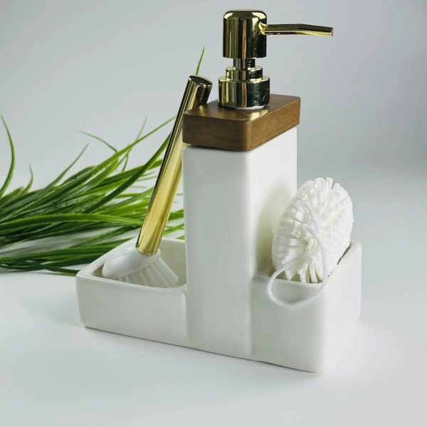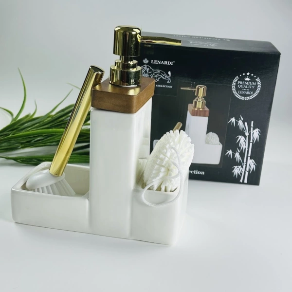 235-035 Набор кухонный диспенсер губка и щетка TROPICAL в под.уп.(х12)Фарфор
