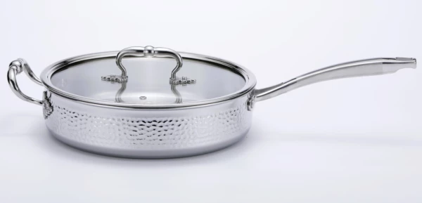 -первый слой изготовлен из высокопрочной нержавеющей стали толщиной 0,5мм, которая дает возможность использовать изделие на индукционных плитах;