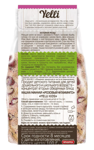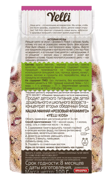 Кашка манная "Розовый фламинго" 100гр 1/9 "Yelli kids"