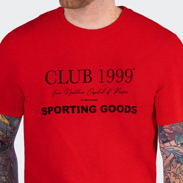 Мужская футболка с круглым вырезом горловины (принт "Club 1999").Материал: Cotton - материал из натуральных волокон, который удобен в носке, быстро впитывает и отводит от тела влагу, хорошо пропускает воздух и не раздражает кожу. Хлопок гигиеничен, обладает устойчивостью к истиранию и разрыву, помогает балансировать температуру для избегания перегрева. В стирке требует более бережного обращения. Рекомендуется утюжить и стирать вывернутыми (особенно изделия с принтом) на изнаночную сторону при температуре 30 градусов.ВНИМАНИЕ! Оттенок цвета ткани может отличаться в зависимости от партии товара, также могут быть незначительные отличия цветовых оттенков разных деталей одного изделия. Производители ткани не считают это браком, объясняя это технологическими особенностями производства. Цветовая гамма товара может быть изменена (в рамках допуска) производителем трикотажных полотен в зависимости от серии поставки без предварительного уведомления.В связи с этим, подбор комплекта одежды в одном оттенке возможен только в процессе формирования единого заказа.Состав: 92% Cotton, 8% Elastane
