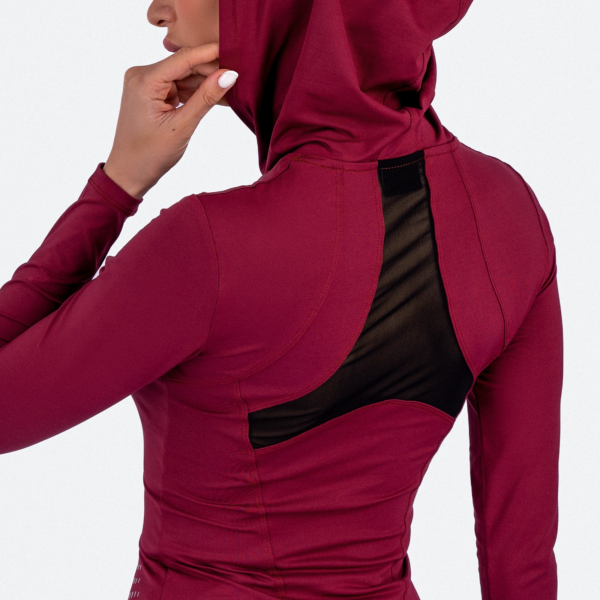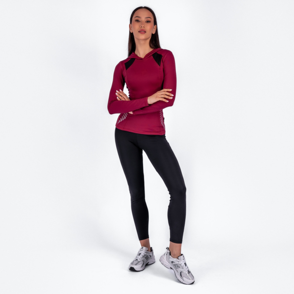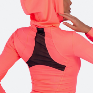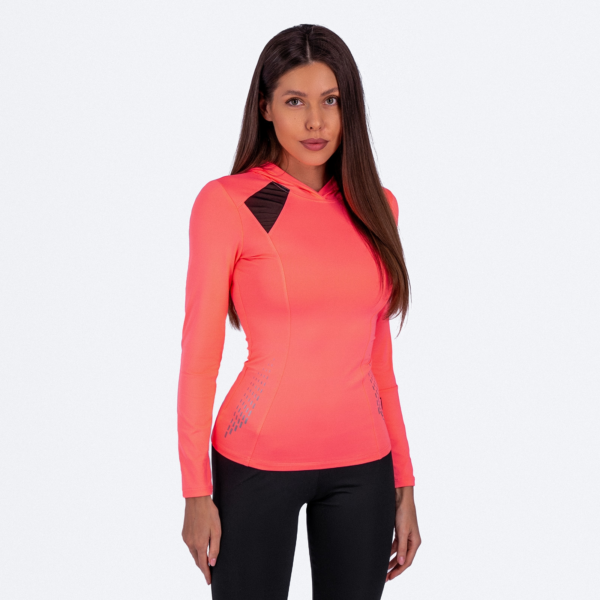 Женский лонгслив прилегающего силуэта с капюшоном и вставками из сетки (термо "светоотражающая").