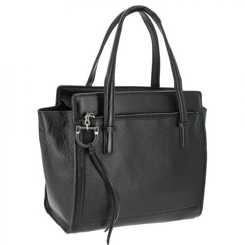 Внутри: одно большое отделение. По бокам расположены карманы на молнии и без для документов, телефона и мелочей. С внешней стороны на передней стенке имеется накладной вместительный карман на молнии. На дне сумки - металлические ножки, предохраняющие от потертостей. В комплекте удлиненный ремень. Модель хорошо держит форму. Сумка закрывается на молнию.