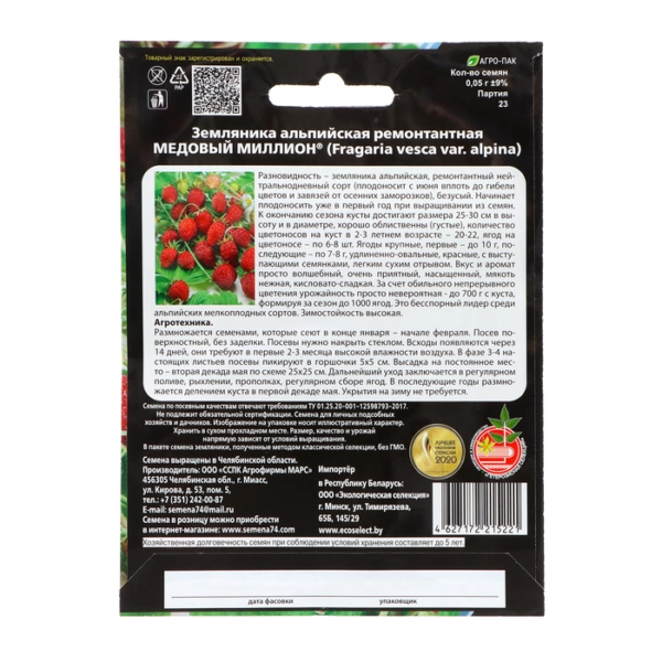 Семена Земляника "Медовый миллион" , 0 ,05 г