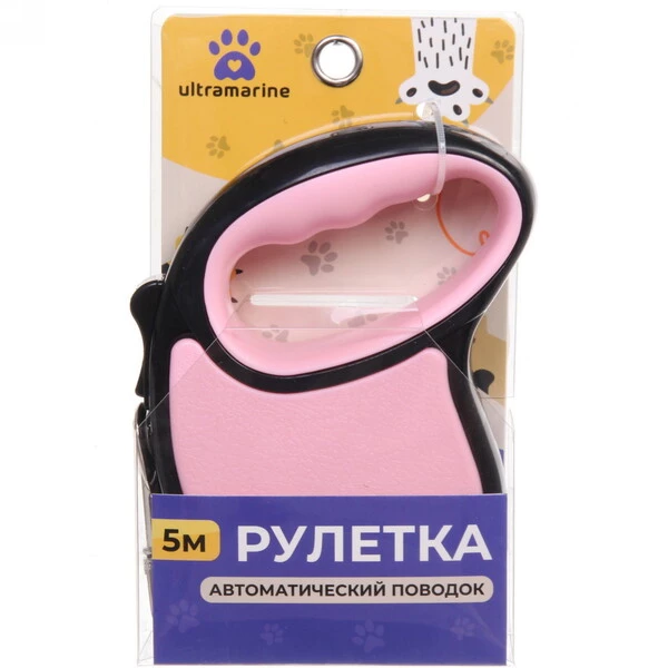 Поводок-рулетка "Верный друг" 5м до 15кг цвет розовый