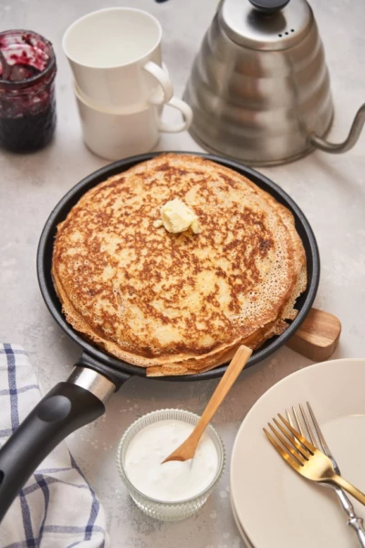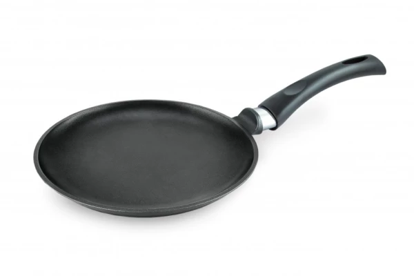 Блинная сковорода сделает процесс выпекания блинов максимально комфортным и простым. Благодаря длинной ручке, низкому борту и многослойному антипригарному покрытию так легко переворачивать и снимать блины. Утолщенное дно с полностью магнитной поверхностью делает сковороду идеально подходящей для использования на индукционных варочных панелях, обеспечивает особые термоаккумулирующие свойства, блины равномерно пропекаются по всей толщине, красиво румянятся с обеих сторон и приобретают отменный вкус. С блинной сковородой "Нева металл посуда" - ни один блин не пригорит.