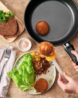 Идеально подходит для жарки и томления. Форма сковороды универсальна: сочетает в себе достаточно высокие борта и большую полезную площадь дна. Она отлично подходит для приготовления таких блюд как котлеты, шницели, тефтели, голубцы, жаркое, гуляш, а также гарниров и блюд с большим количеством ингредиентов.