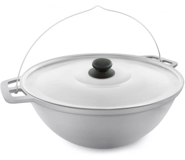 Казан глубокий "Походный" из непокрытого алюминия идеален для туризма. Съемная оцинкованная дужка позволяет свободно перемещать и размещать казан над костром. Казан подходит для различных типов приготовления на открытом огне: в нем можно жарить, тушить, томить, варить. Долговечен и практичен в эксплуатации благодаря литому алюминиевому корпусу. Такой корпус не подвержен деформации и обеспечивает равномерный нагрев.