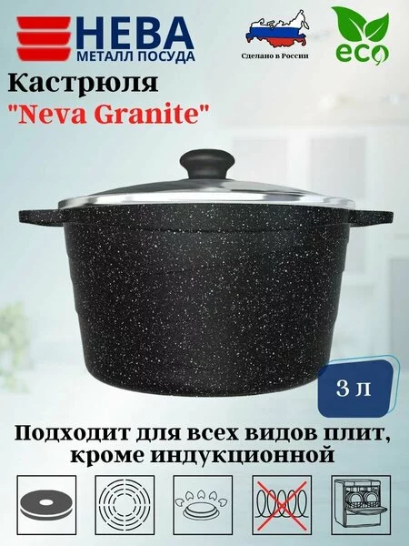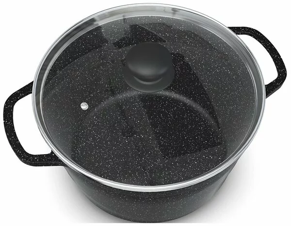 Кастрюля со стеклянной крышкой Neva Granite NG6630 изготовлена из высококачественного алюминия с антипригарным покрытием