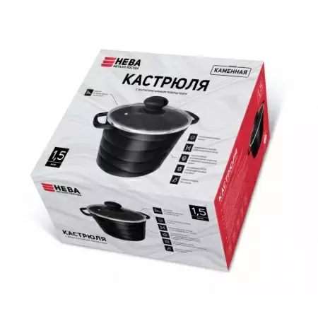 Кастрюля со стекл. крышкой 1,5 л "Каменная" Черный гранит Артикул: 186615