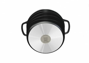 Кастрюля комплектуется крышкой из жаростойкого стекла с ободом из высококачественной нержавеющей стали.