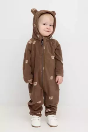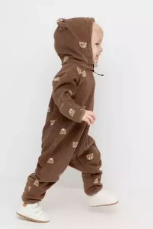 Флисовый комбинезон со съёмным капюшоном для мальчика. У изделия высокий воротник и съёмный капюшон на кнопках с декоративными ушками и подкладом из супрема. Застёгивается на удлинённую молнию. Предусмотрена защита шеи и подбородка. В размерах 40/62 - 48/74 на рукавах и штанинах есть удобные отвороты. Оригинальная набивка выполнена из стойких, гипоаллергенных текстильных красителей. Комбинезон сохраняет цвет и форму после многократных стирок. верх Китай мужской CROCKID Осень-Зима флис