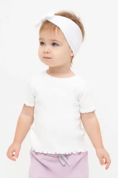 Футболка для девочки из эластичного трикотажа в рубчик. 95% хлопок; 5% эластан Узбекистан женский CROCKID Волшебные единороги кашкорсе Весна-лето
