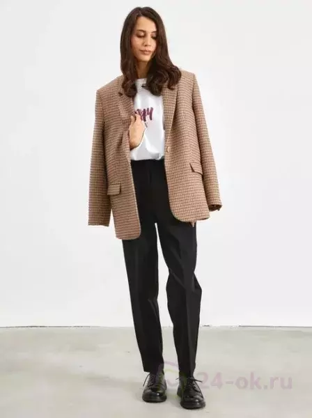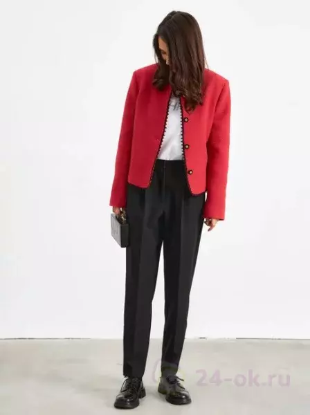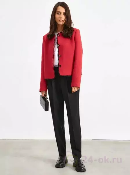 Брюки прямого кроя, выполнены из костюмной ткани черного цвета. Пояс стабильный, застежка на пуговицу и молнию, по передней и задней части изделия заутюженные стрелки, в боковых швах карманы.