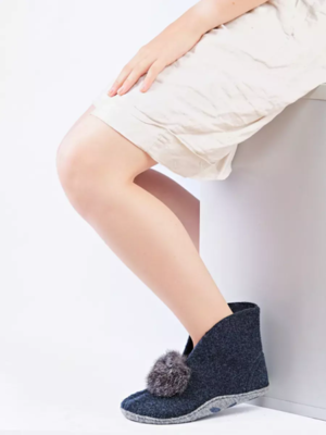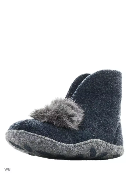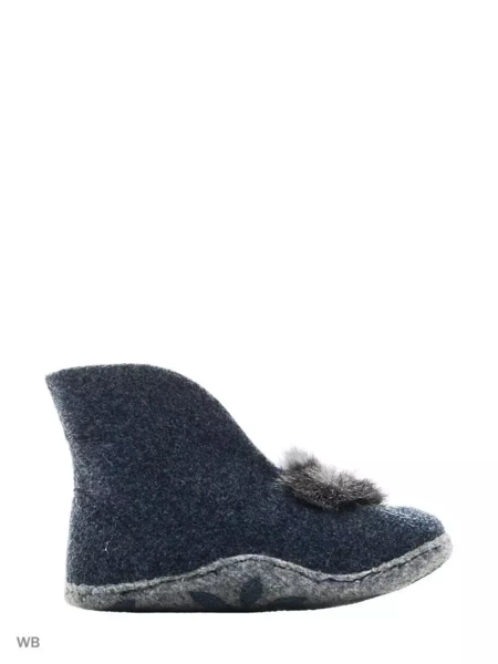 женские, двуцветные, высокие, полностью войлочные тапочки INBLU P2-2B, декорированные меховым помпоном серого цвета, с раскрывом в месте подъёма ступни и износостойкой, нескользящей вставкой в виде логотипа на подошве.