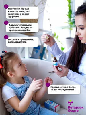 Витаргол Форте – это хорошо известный всем Протаргол. Витаргол Форте - имеет срок годности 2 года, а не 30 дней как все привыкли. Выпускается в виде готового раствора (покупателю ничего не нужно смешивать). Огромный плюс что это - модифицированный протеинат серебра (очень мелкие частицы серебра) – отсюда появились новые свойства, и быстрое бактерицидное действие на микробов, отсутствие побочных действий. Препарат хорошо изучен (более 15 лет исследований). Объем флакона с готовым раствором - теперь 15 мл, а не 10 мл, при этом цена стала более привлекательной. Все остальное: яркое не стандартное оформление продукции, удобные насадки для использования, работа напрямую с производителем – это большой плюс!