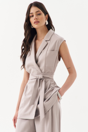 Жилет двубортный полуприлегающего силуэта: •воротник пиджачного типа с лацканами