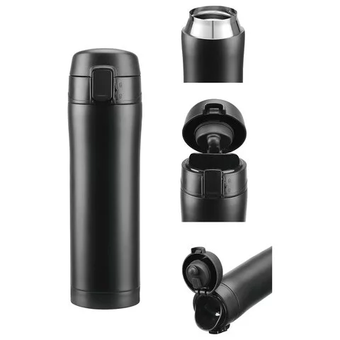 Термокружка 470 мл из нержавеющей стали SUS304, безграничный черный матовый, LAIMA, 608080