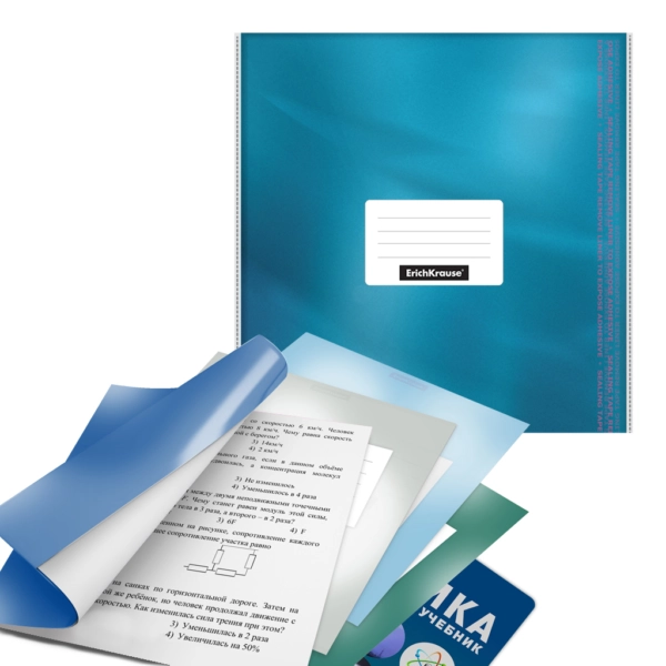 - Широкий клапан в край с клеевым краем позволяет адаптировать обложку к размеру учебника.