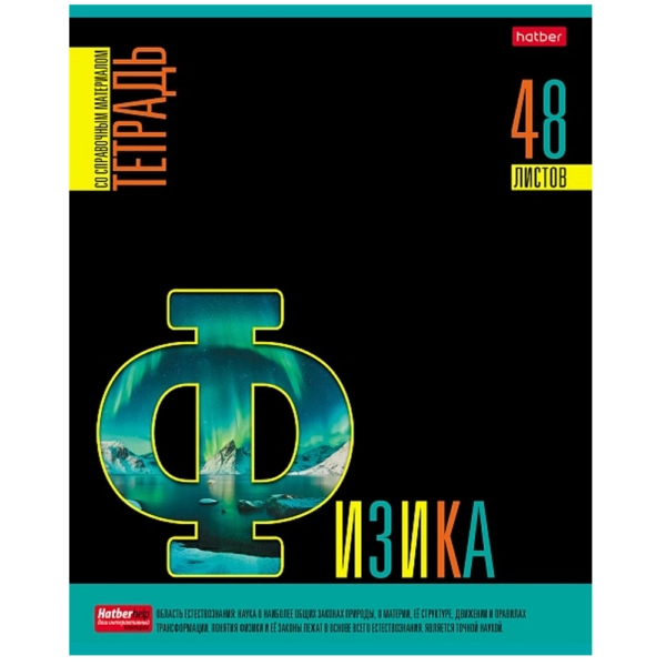 Тетрадь 48 листов, клетка, Хатбер, рисунок Яркое на чером, Физика