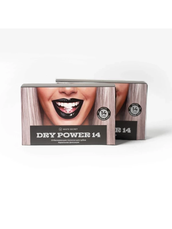 Отбеливающие полоски White Secret DRY POWER 14 — самые мощные полоски в линейке бренда! Максимальный результат плюс идеальная фиксация на зубах дают действительно сильный результат на 4-8 тонов при приятном использовании. Полоски обладают классным вкусом и не вызывают дискомфорта, не сползают, благодаря сухому отбеливающему гелю. Рекомендуем к покупке, если вам решительно нужен максимальный результат. Обратите внимание, что полоски не подходят для чувствительных зубов! Время аппликации от 30 до 60 минут. Состав: PVP K30, Glycerin, Hydroxypropyl cellulose, PVP K90, Aqua, Hydrogen Peroxide, Alcohol, Menthol, Lemon Flavour.