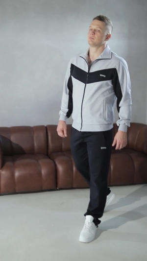 Спортивный костюм М-1510: Серый меланж / Тёмно-синий
