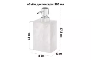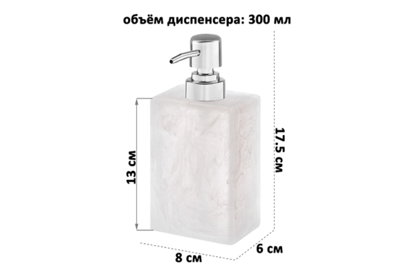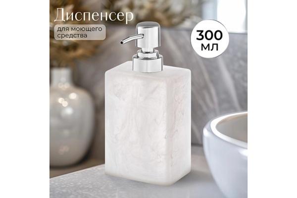 Диспенсер 300 мл 8*6*17,5 см, белый мраморный Состав: Полирезин, пластик