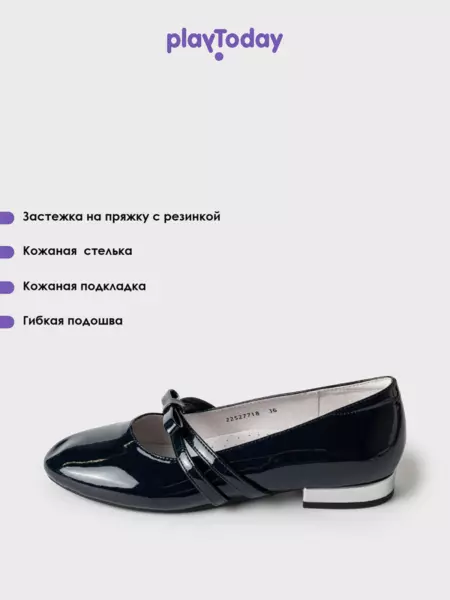 Классические темно-синие школьные лаковые туфли для девочки подростка от PlayToday — элегантная, удобная и практичная модель, идеально подходящая для школы, торжеств и прогулок в тёплое время года. Устойчивый каблук, лаконичный дизайн и комфортная посадка делают эти универсальные детские туфли любимой парой на каждый день.