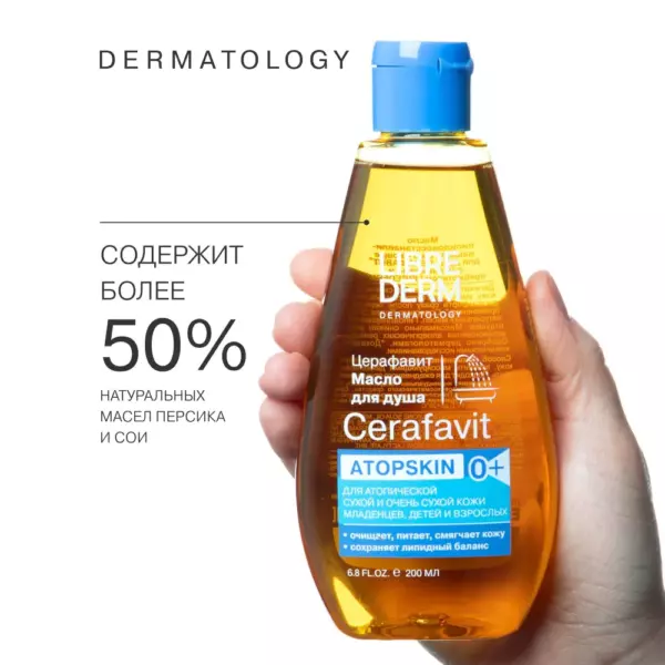 Деликатно очищает кожу, даря ей мягкость и комфорт без чувства сухости и стянутости. Масло для душа содержит более 50% натурального масла сои, которое восстанавливает липиды кожи, а также эпидермальный барьер и влагоудерживающую способность кожи.