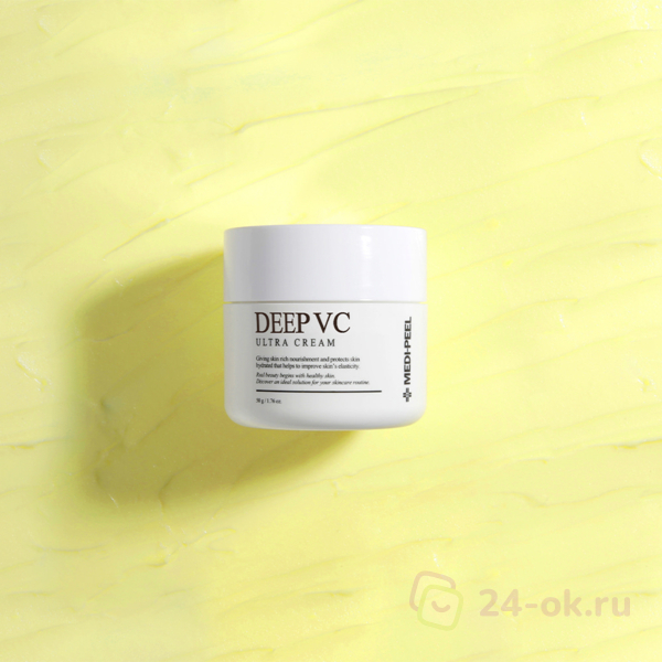 Питательный витаминный крем для сияния кожи Medi-Peel Dr.Deep VC Ultra Cream отлично тонизирует и укрепляет иммунитет, устраняет тусклость, освежает и дарит коже здоровое сияние. Крем прекрасно справляется с сухостью и шелушениями, укрепляет защитные функции кожи, увлажняет и помогает в борьбе с пигментацией.
